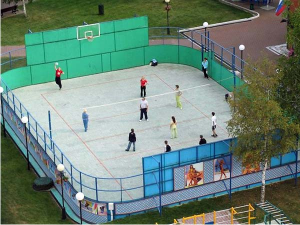 2 открытые игровые площадки с ограждением: универсальная и теннисный корт (зимой освещаемые катки)