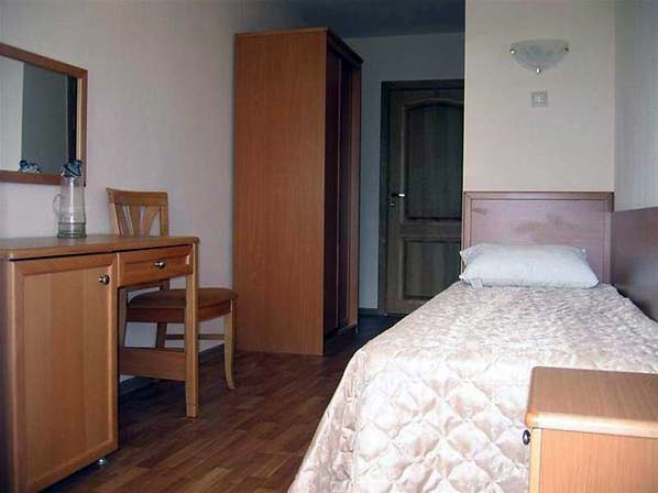 Стандартный 2-местный (12кв.м). В номере прихожая, ТВ, телефон, холодильник, 2 кровати, 2 тумбочки, шкаф, санузел с душевой кабиной (в некоторый номерах есть кресло-кровать (узкое-для детей), балкон.